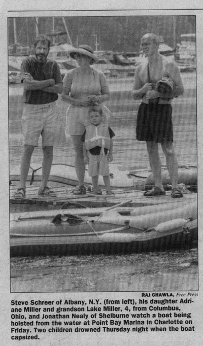 The boat capsized about 10 p.m. on Lake Champlain in Ferrisburgh. Nine-year-old Melissa Mack and her 4-year-old brother, Trevor, drowned. The accident left the community wondering what caused a boat on calm waters to suddenly capsize.