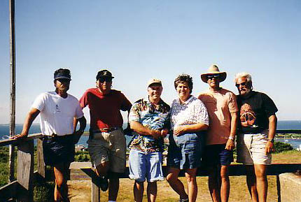 We arrived in the early afternoon, entered the anchorage and rafted up. Steve and Karen Silvia on their Mac 26X sailed up from near the canal in the early afternoon. Roger held down the fort while the rest of the group went into Cuttyhunk to explore. Cuttyhunk is a small island but we found an ice cream stand and a few restaurants. We walked the road to the top of the hill. Karen brought her camera and took the following pictures: first of the group
