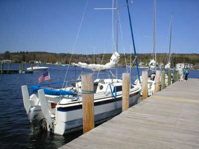 The first NETS/Moane rendezvous of the year was held at Fay's Marina. After quite a bit of rain, Friday cleared up, though it was still unseasonably cold. I was last to arrive at about 4pm. Chuck Healy, a new member, "volunteered" to make arrangements for us at Fay's and was on hand to greet us. George Lavoie and his friend Ron came down from Canton Maine. Ken Fordham and his wife Marilyn and friend Josiah, who keep their new-to-them Catleina 25 at Fays, were there getting their boat ready for the summer. Chuck and his wife Helen and their younger daughter, Brianna brought their boat up from Ames Farm for the weekend. And lastly Ed Goodhue brought his boat up from the Cape and offered me his "guest cabin" for the weekend. After rigging we went out for dinner at the Sawyers and then George and Ron, Ed and I hunkered in for a verry cold night. Saturday dawned chilly, with light winds.